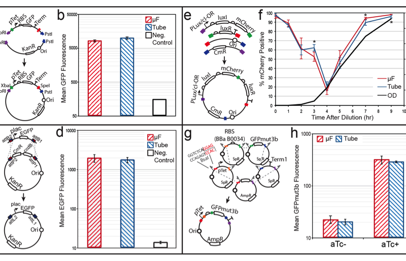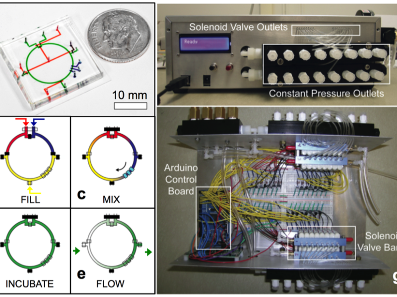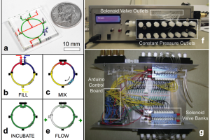 This microfluidic ring-mixer device enables the mixing of up to three distinct fluid components via eight independently addressable control channels. We used this device to assemble genetic circuits via ligation, Gibson, Golden Gate, and Gateway assembly biocchemistries.